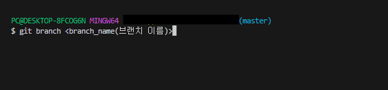 위 명령어에서 '<branch_name(브랜치 이름)>' 자리에 생성하고자 하는 브랜치의 이름을 기입해주면 된다.