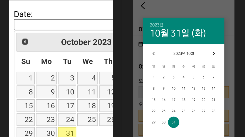 모바일 브라우저로 확인시, 사용자의 사용성 측면에서 date타입의 input이 월등하게 좋다는 것을 확인 할 수 있다.