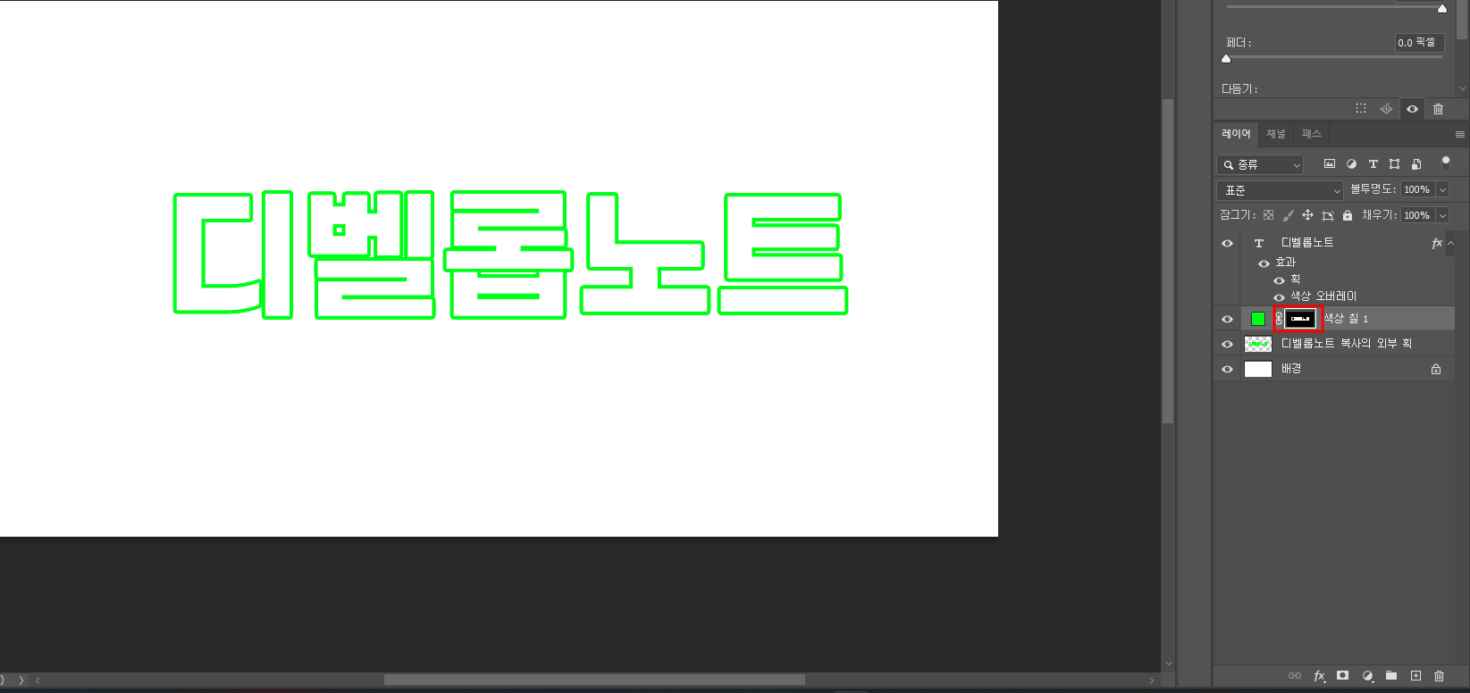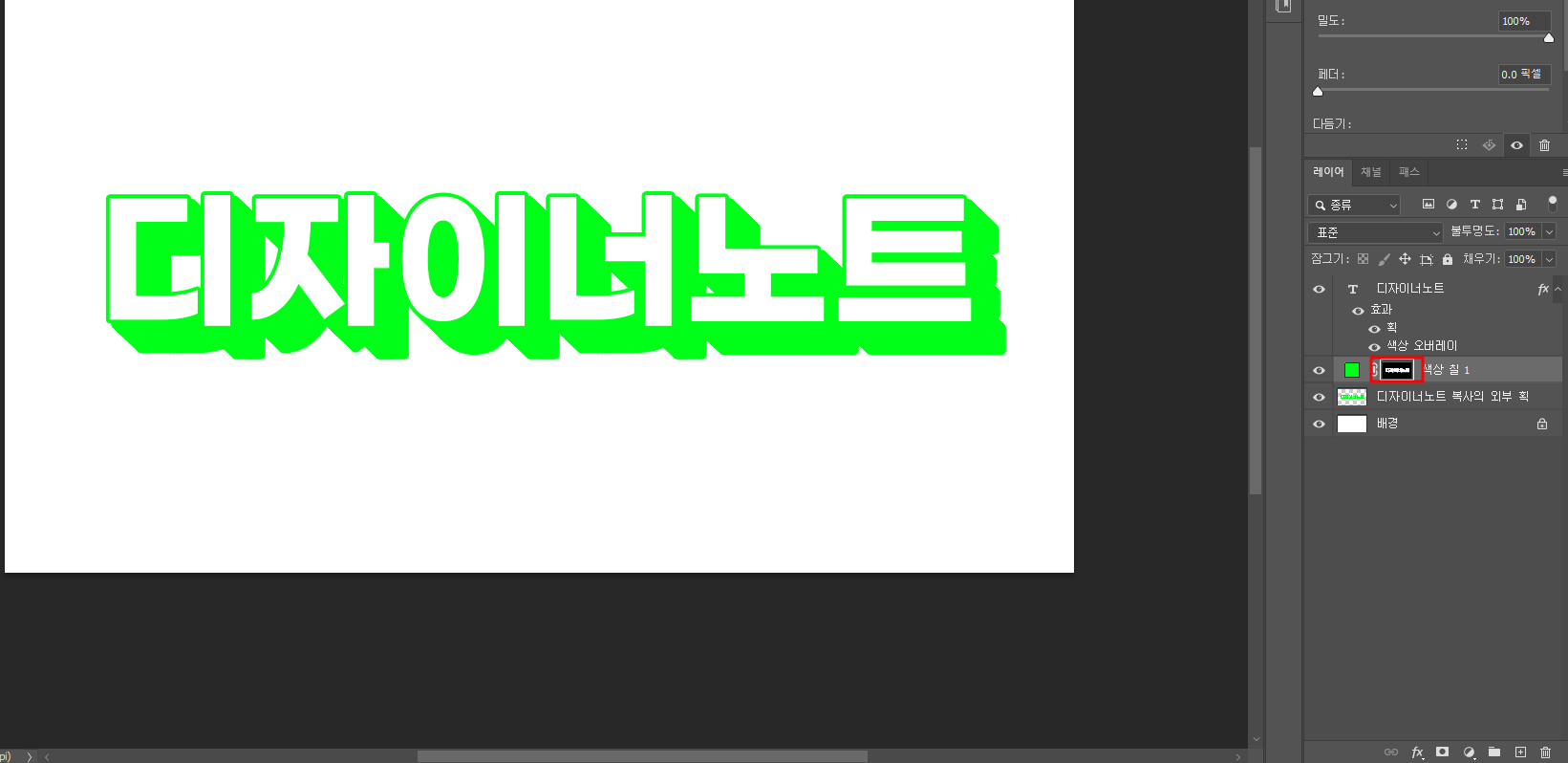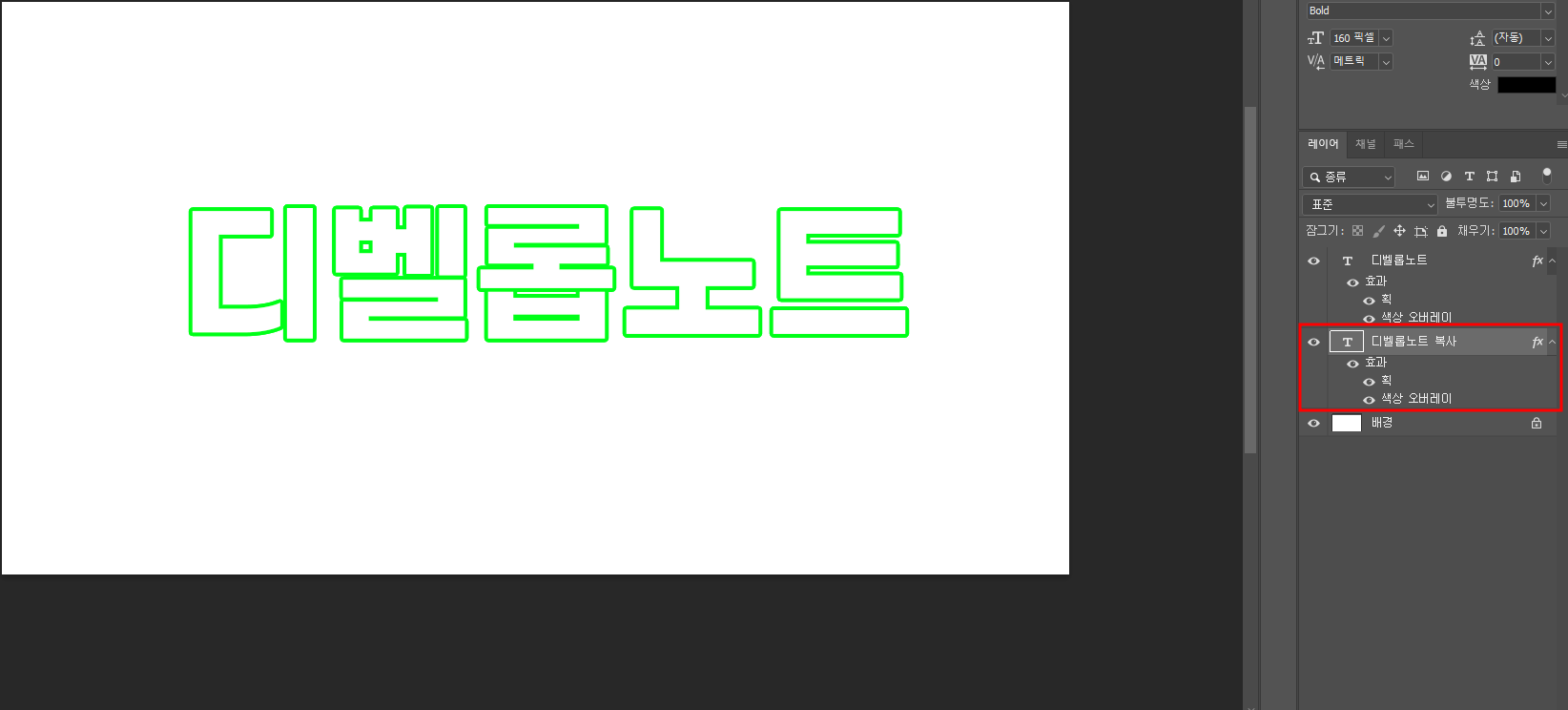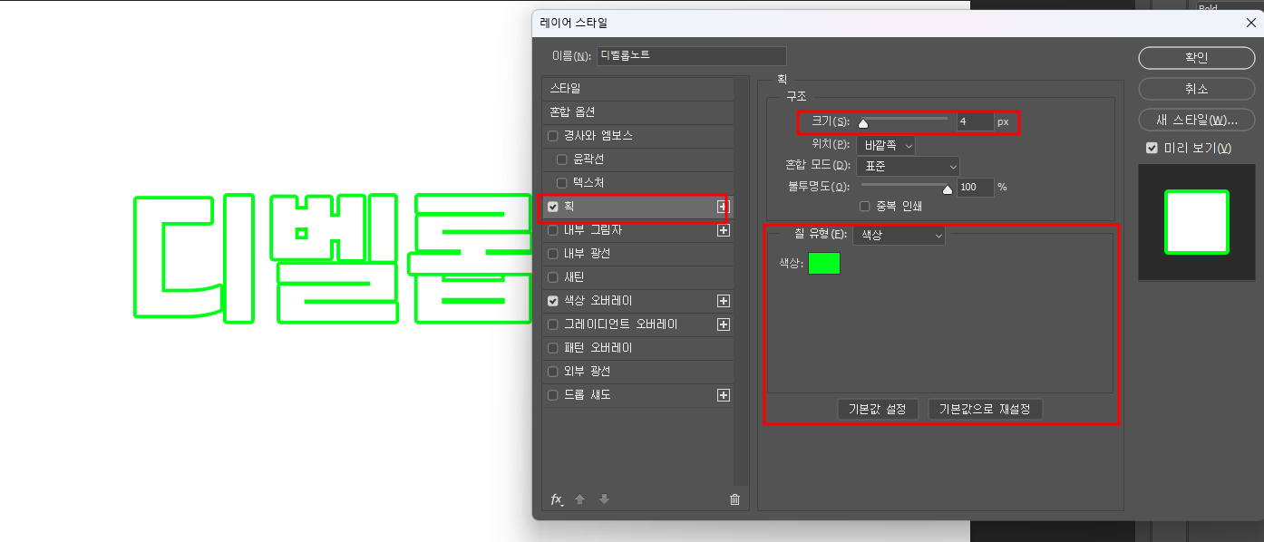 *이때 색상 오버레이는 '흰색', 획은 '만들고자 하는 텍스트의 컬러'를 입힌다.