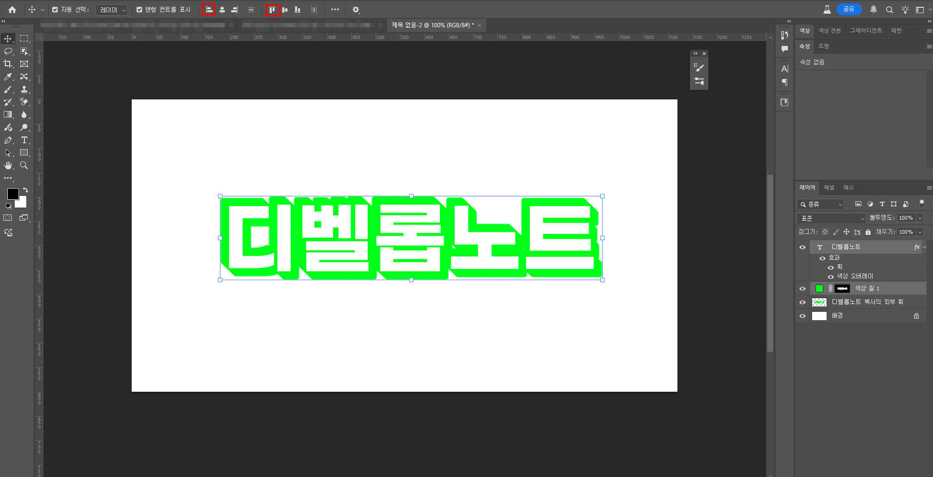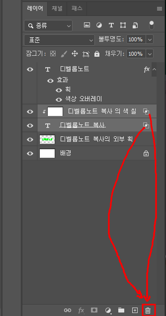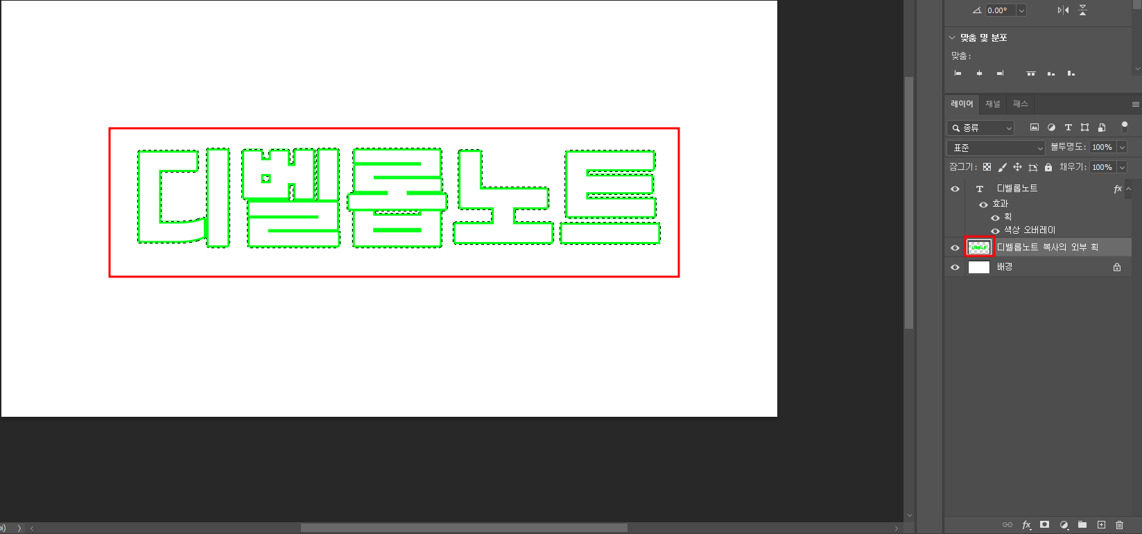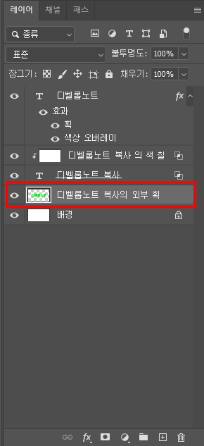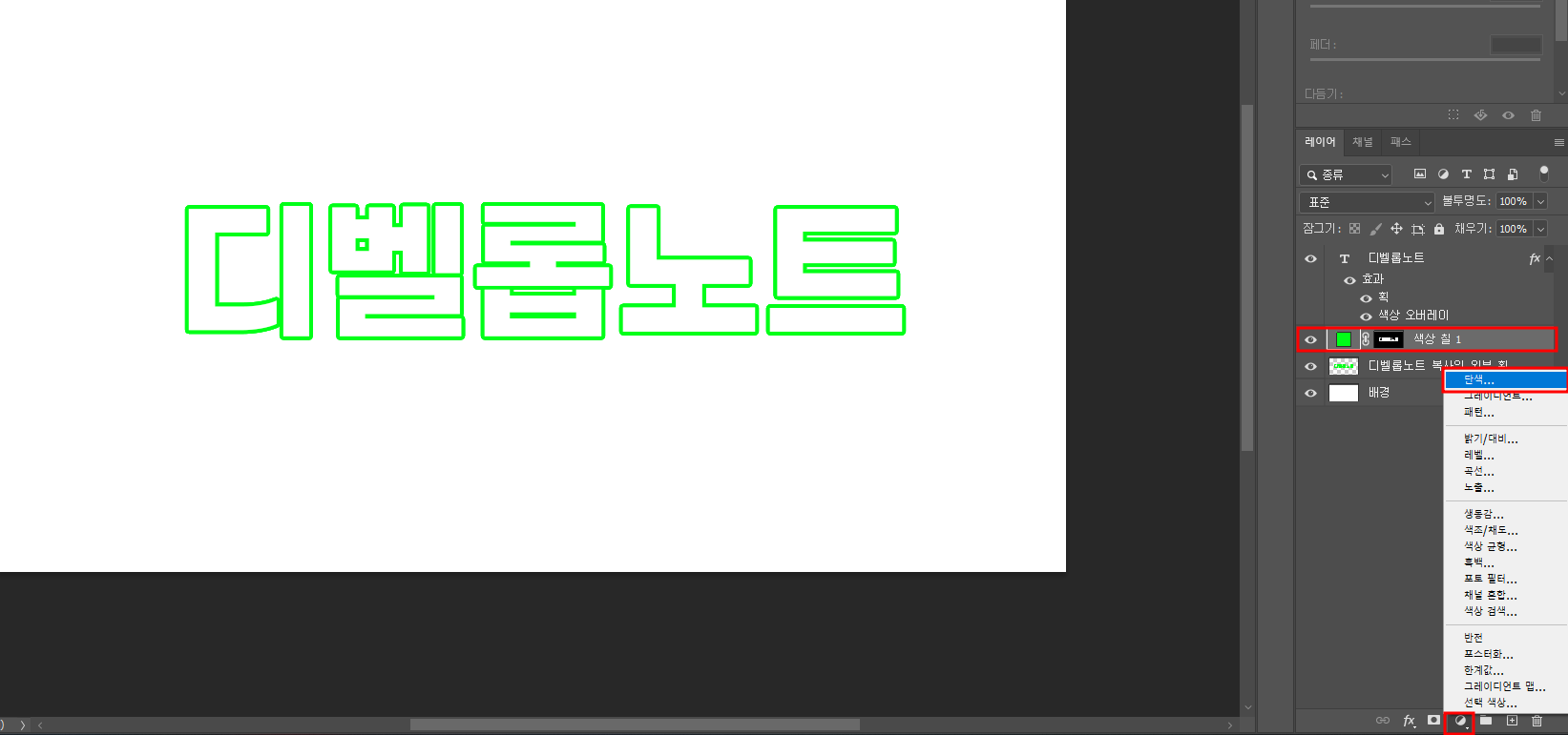 *이때 색상 오버레이는 '흰색', 획은 '만들고자 하는 텍스트의 컬러'를 입힌다.