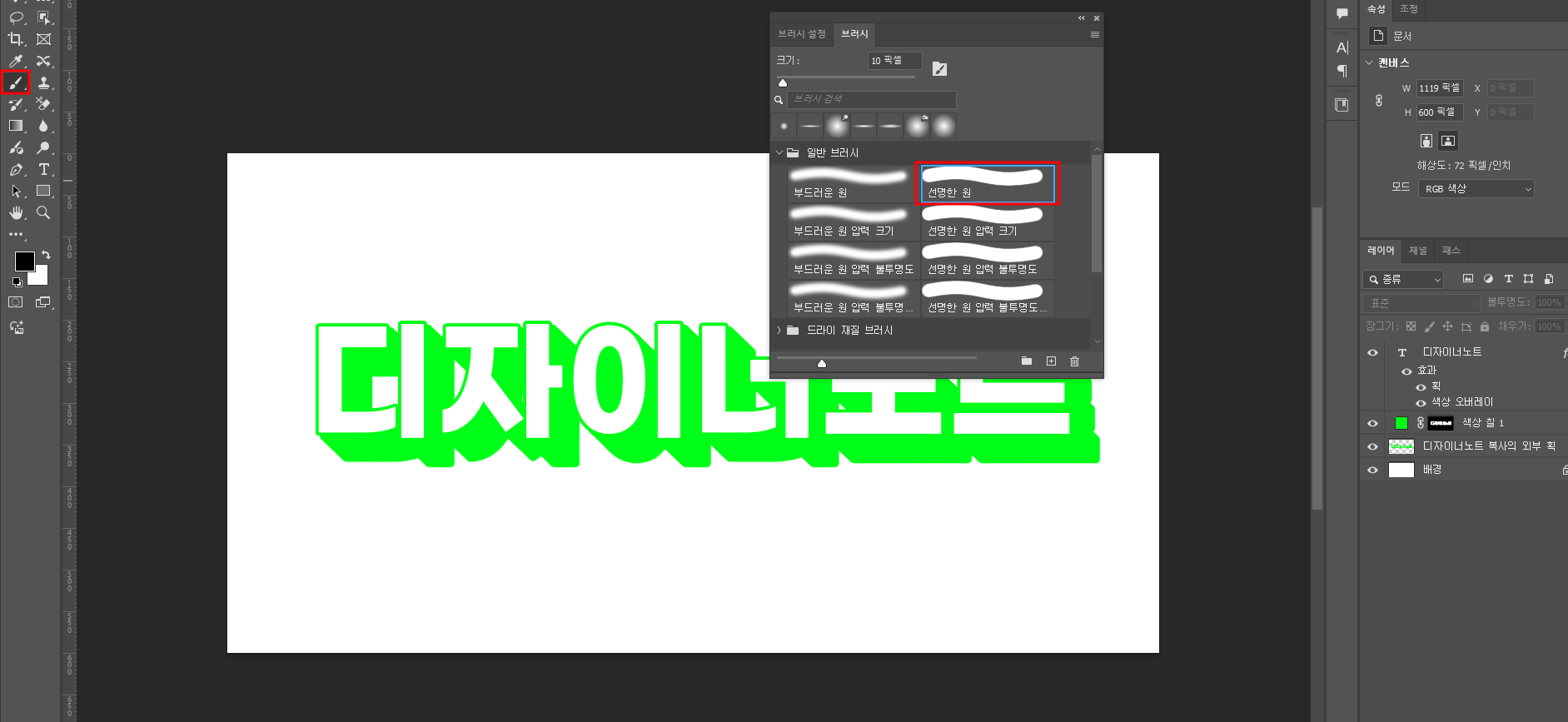 *브러쉬 툴을 선명한 원으로 선택한다. 크기 조절은 텍스트 정리에 따라 적당하게 해준다.