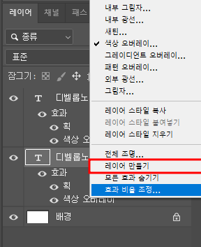 3. 복사한 텍스트 레이어 스타일을 우측 클릭하여 '레이어 만들기'를 실행한다.