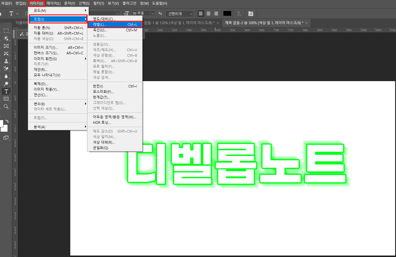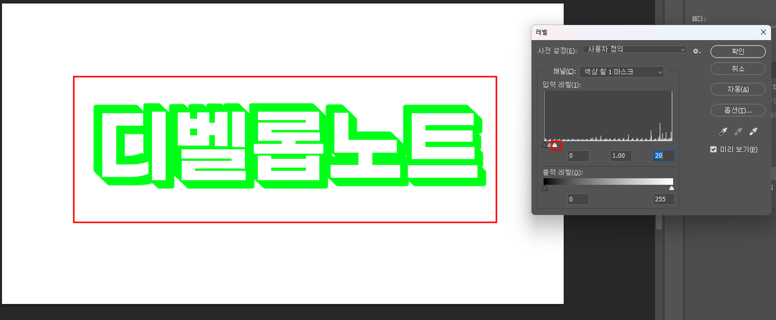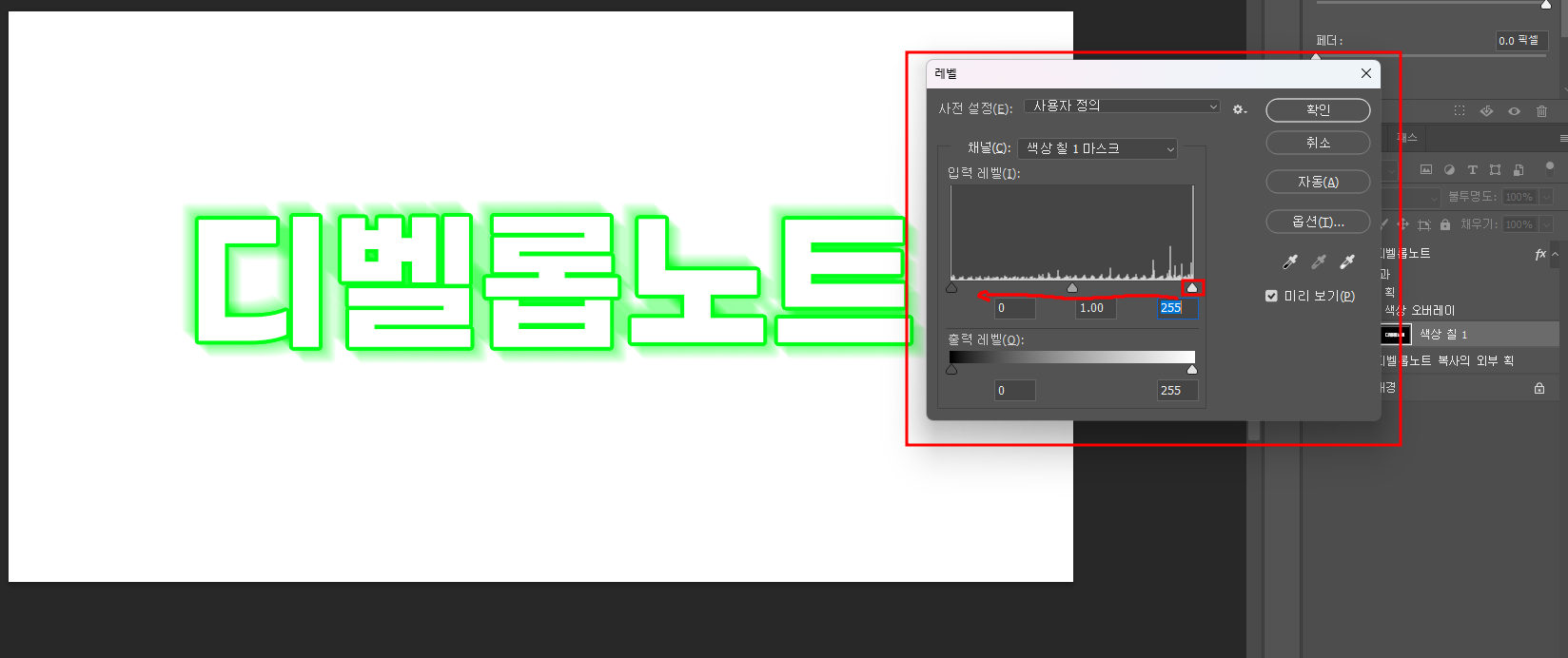 5.생성 된 '색상 칠'의 레이어 마스크에 레벨(level)처리를 해준다.