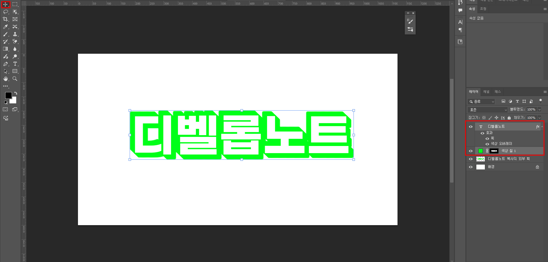 *이때 '이동 도구'를 선택한 상태에서 Shift를 누른 상태로 작성한 텍스트 레이어,색상 칠 레이어를 중복 선택해준다.