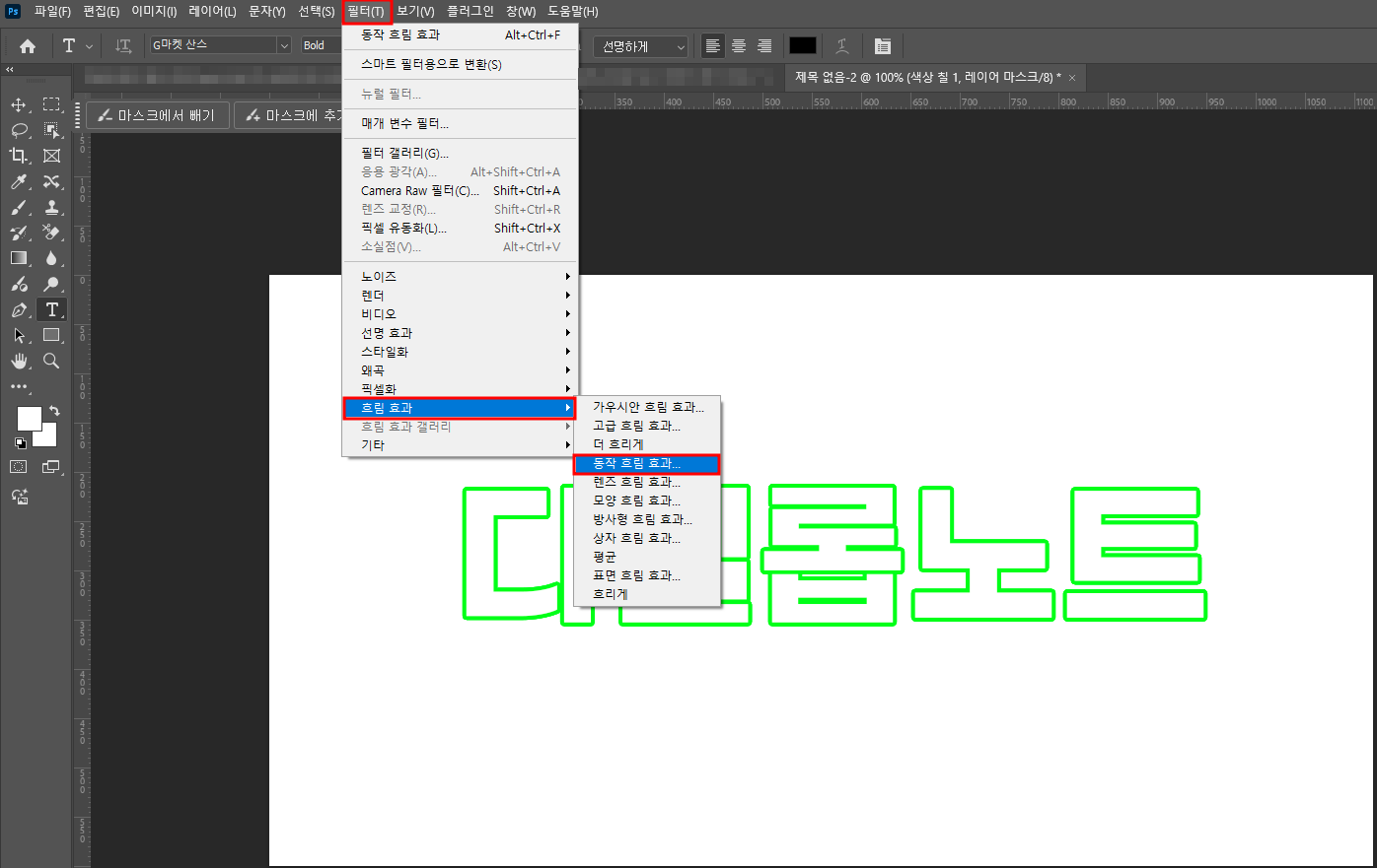 *'필터-흐림 효과-동작 흐림 효과' 경로를 통해 동작 흐림 효과 확인이 가능하다.