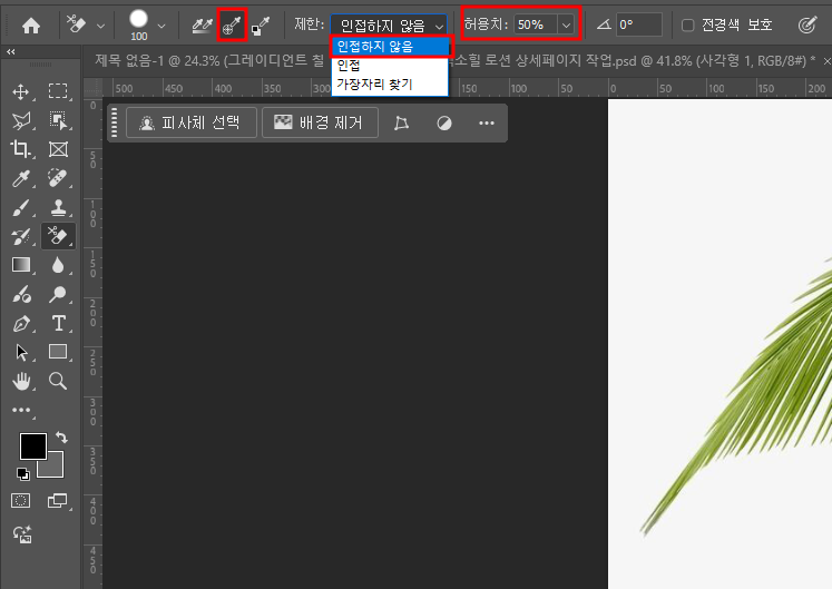 위의 야자수 잎을 배경을 제거하고자 한다.