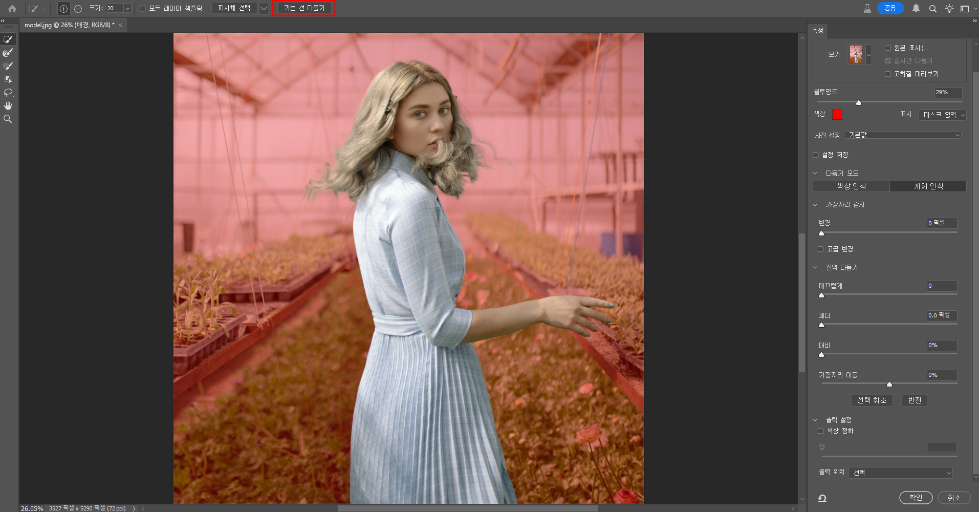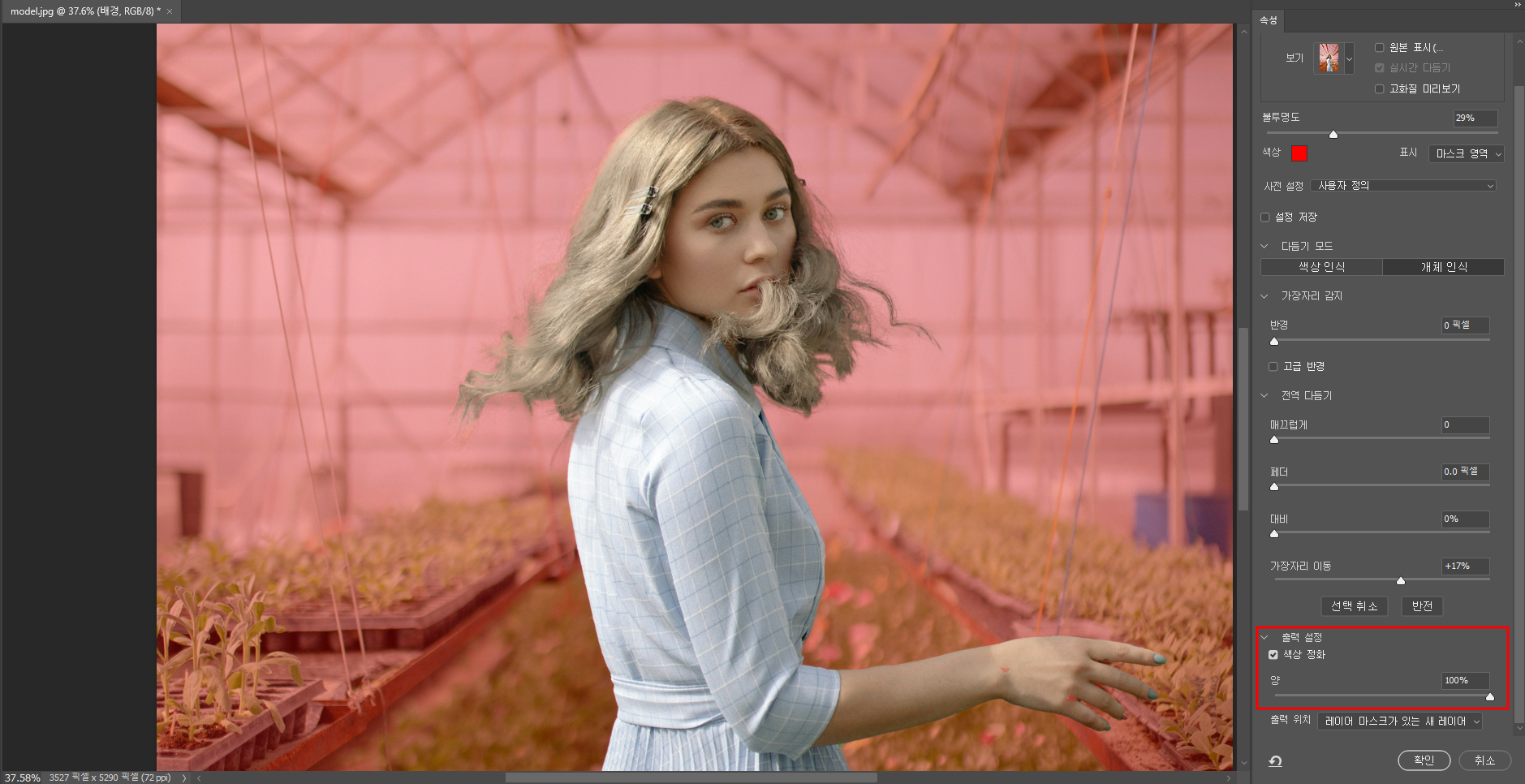 * 그 외 '선택 및 마스크' 창에서 작업 해야 할 디테일 작업